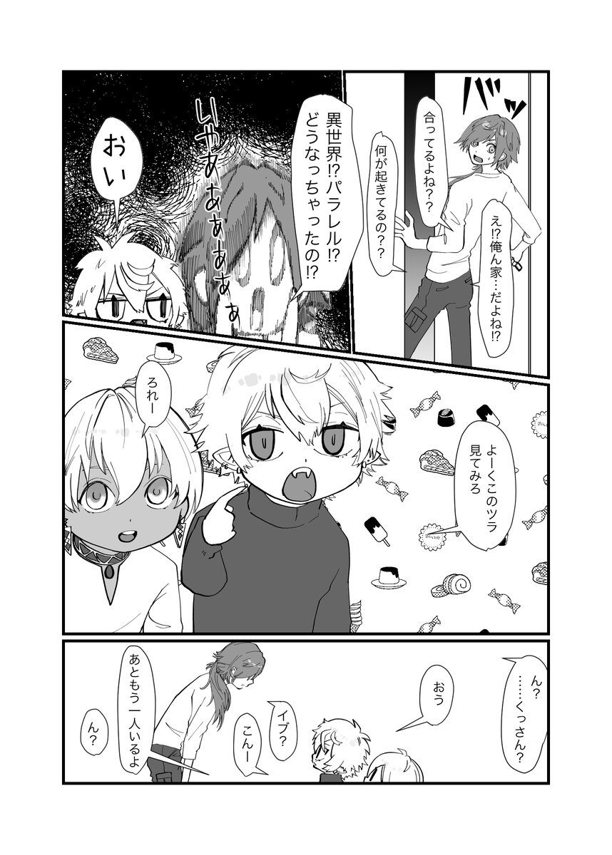 にじそうさく07新刊『4321』 イブラヒム中心のメンバーによるショートストーリーの詰め合わせです。 去年のにじそで出した『口癖御三家、育児をするの巻』 が再録されてます。続く…(1/2) #にじそうさく07