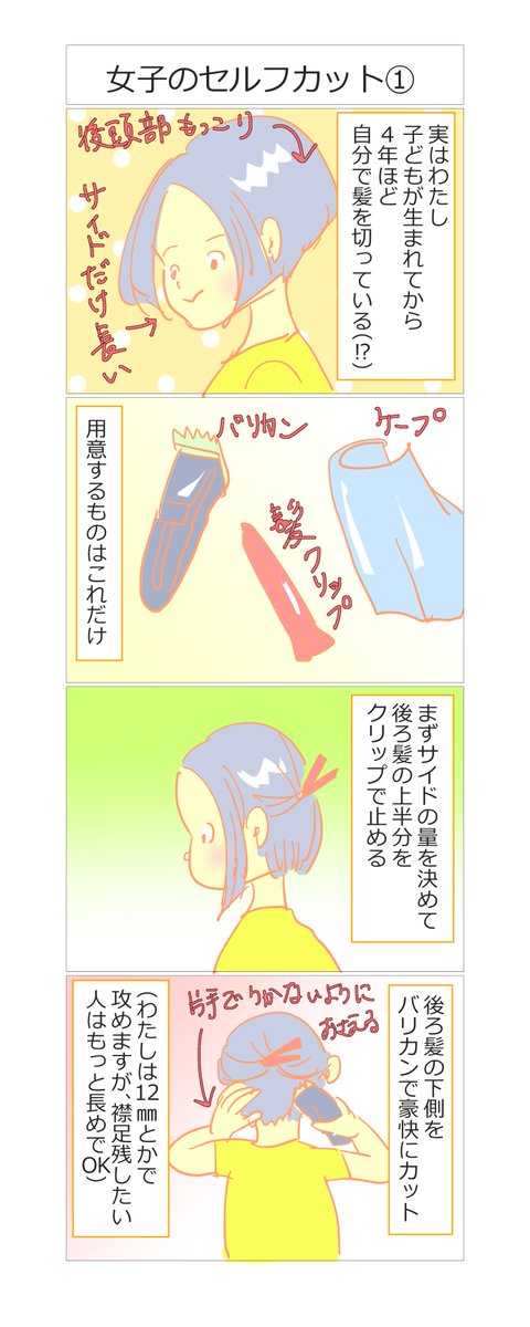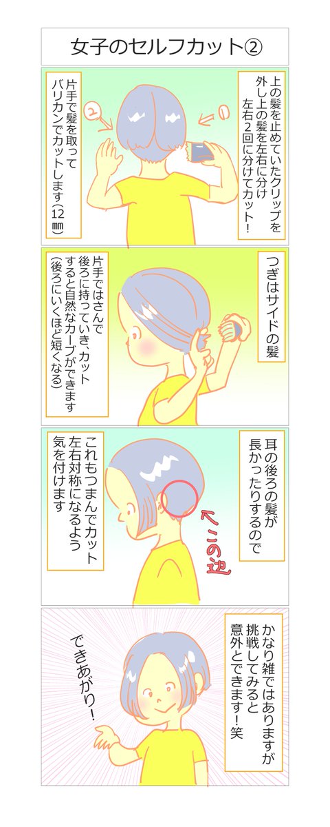 女子のセルフカット術 ブログ更新しました! #四コマ漫画 #4コマ漫画 #育児漫画 #育児絵日記 #web漫画 #日常漫画 #漫画 #育児 #子育て #ブログ #ワンオペ #生活 #セルフカット #女子 nipponinakagurashi.com