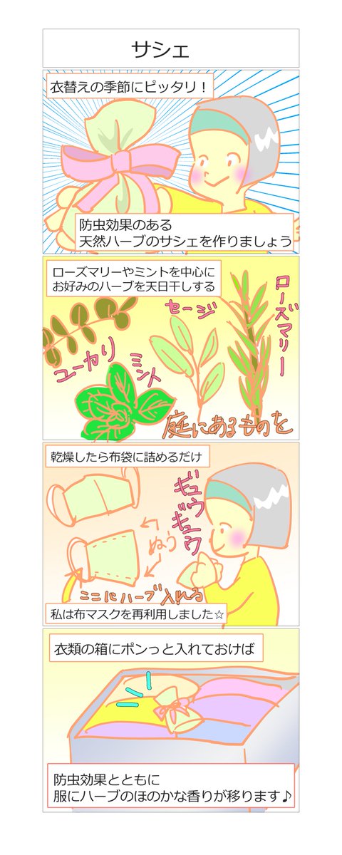 0 4 暖かくなると植物がいっぱいで嬉しいですねー♪ ハーブでサシェを作りました☆ ブログ更新しました☆ #四コマ漫画 #4コマ漫画 #育児漫画 #育児絵日記 #web漫画 #日常漫画 #漫画 #育児 #子育て #ブログ #ワンオペ #生活 nipponinakagurashi.com 22/05/16 15:40