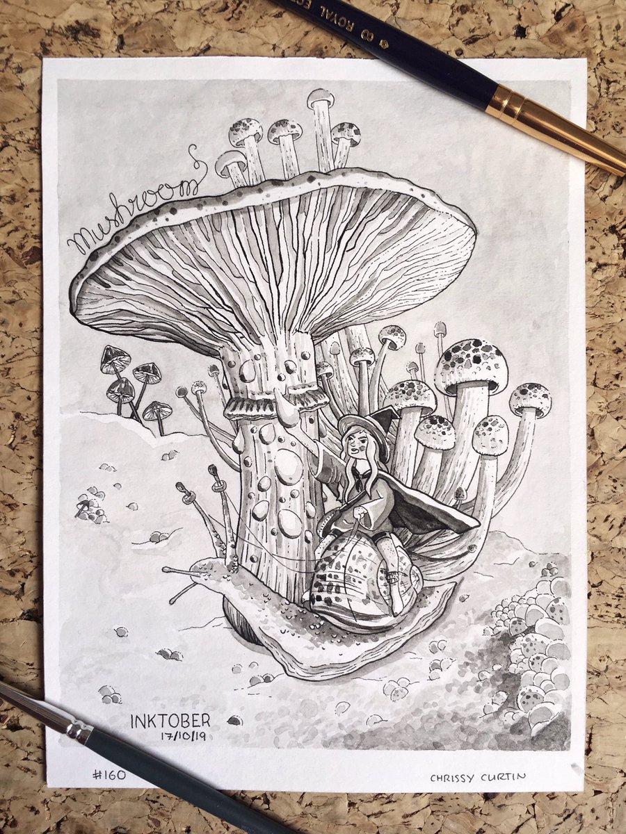 @TheNoisyPencil I’m 214 drawings into my #365drawingscc challenge and right now I’m practicing inking & painting by finishing up my #inktober2019 pieces (very late 😂) ✌️
