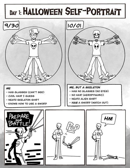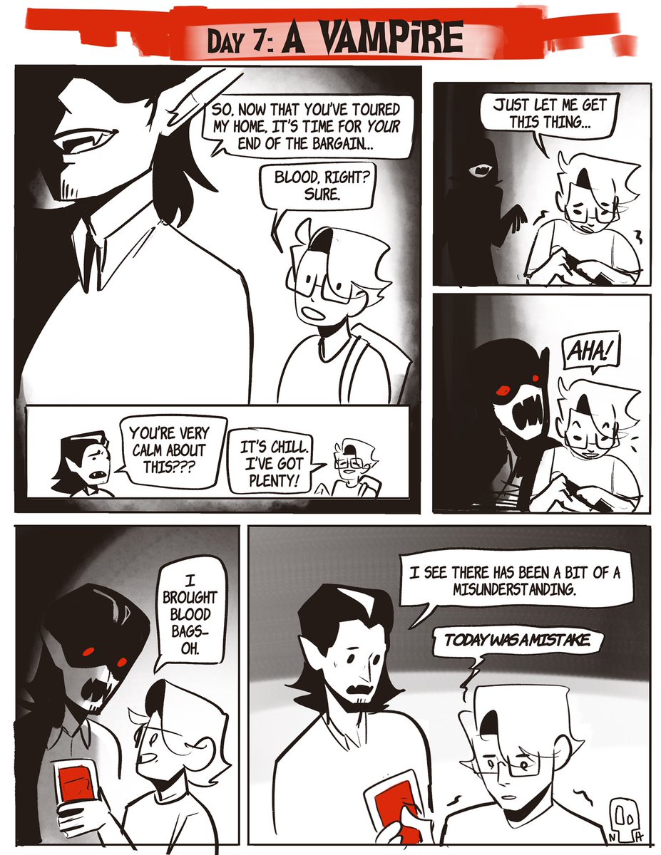 Just realized that when you cross post to Twitter from insta it doesn’t show the image, just posts a link,,, terrible. Anyway, here’s some of the daily comics I’ve been doing! #drawtober2021#inktober2021#comics#art