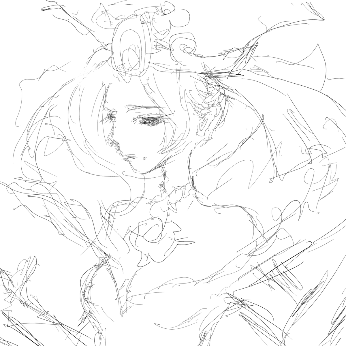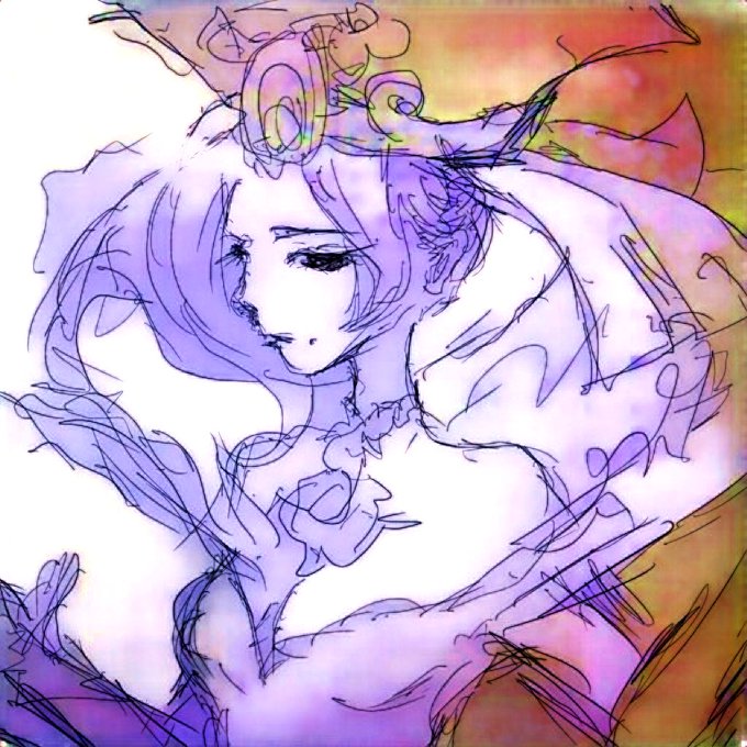 (前ツイートの続き)ちなみに私の中でクロノスは紫色系💜のイメージがあるので、人工知能が塗ってくれた絵の色相・彩度等を調節してみました❣️(遊び過ぎ🤭) 3枚目は私が描いたラフ画🎨 #にゃんこ大戦争 #battlecats #イラスト #アイビスペイント #時空神クロノス #人工知能 #下書き #ラフ画