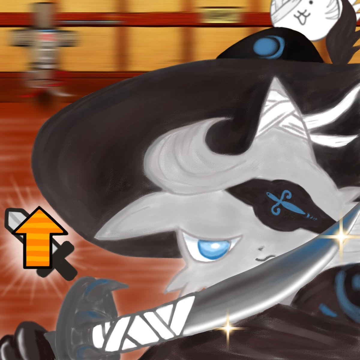 #原作の隣に自分の作品を貼る 🎨 🎀大冒険少女カンナ Swashbuckler Kanna🗡️💎💍 初心の間道場🥋で大活躍中💪✨ にゃんこ図鑑📔によると、好奇心旺盛なドジっ娘ちゃんの様です😝 第三形態も楽しみですね♪ #にゃんこ大戦争 #battlecats #イラスト #お絵描き