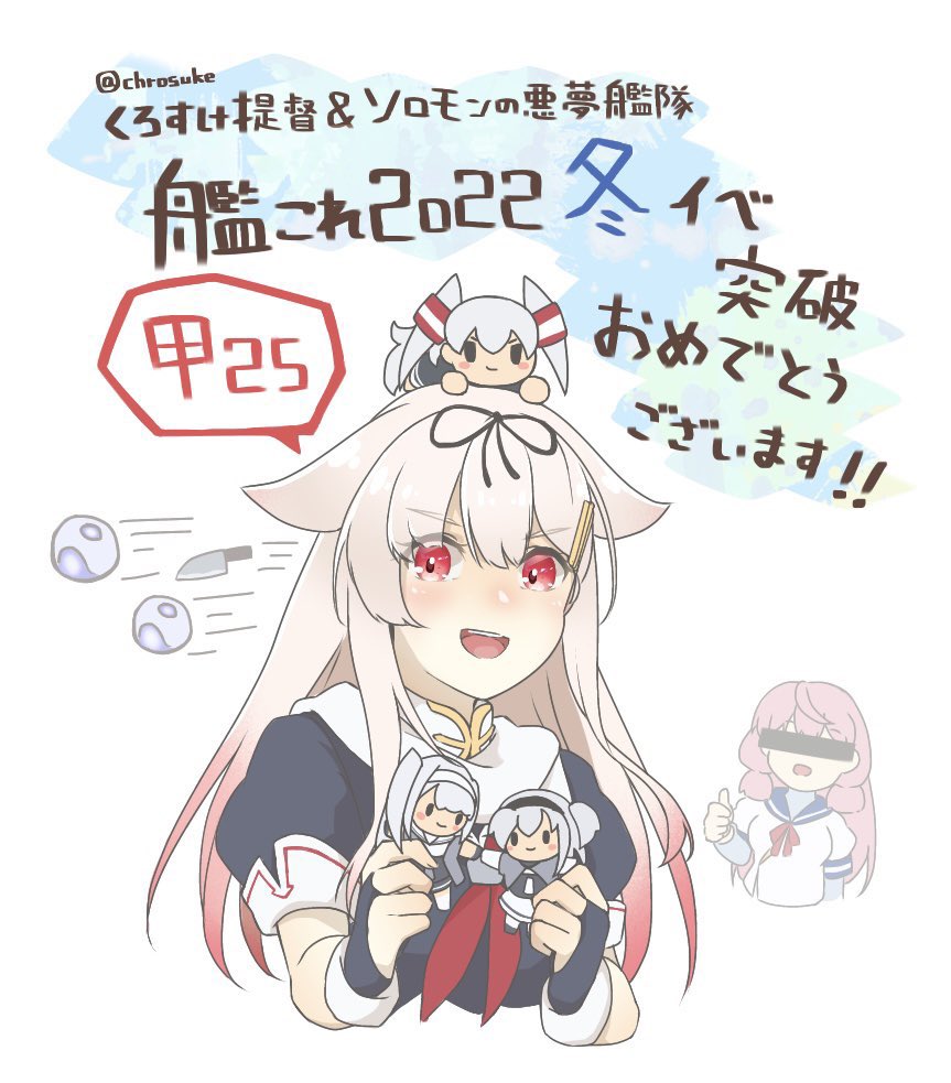 10 44 空豆さん(@hekerotto128 )より、艦これ冬イベントのお祝いイラストを頂いてしまいました!ありがとうございます🙏✨ 最後にボスを叩いた夕立が、涼月と冬月を引き合わせてるイラストてぇてぇ! ……ん?背後に何かいる気がするけど気のせいかな🤔 #艦これ 22/04/03 22:52