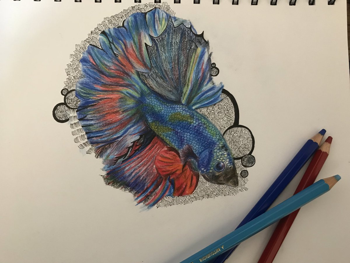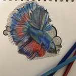 一応描いたんだけど顔とバランスがな #イラスト #イラスト練習中 #魚 #色鉛筆