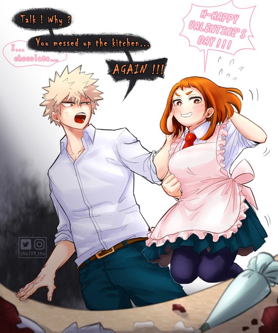 🍫Happy Valentine's Day🍫(2020 old rkgk) One day even passers-by will find out that grumpy Dynamight treats Uravity differently and their romance rumors will be widely reported. Class A will be their best witness😌👌 #勝茶 #kacchako twitter.com/chu109_chu/sta…