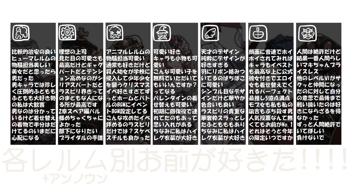 ラスピリ各レルムとアンノウンで好きキャラ代表の人たち #ラスピリお絵描き