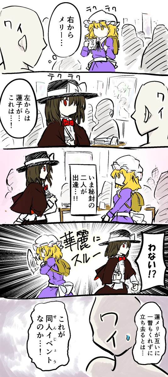 【合同参加情報】 2022.1.10 京都パルスプラザ 科学世紀のカフェテラス 秘03-04 insky. 『珈琲秘封合同』 漫画を7頁程描かせていただきました~。 蓮メリが境界スポットらしき場所を訪ねるお話です。 #珈琲紅茶秘封合同 #酉京都2022告知 #科学世紀のカフェテラス #京都秘封