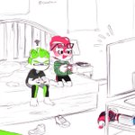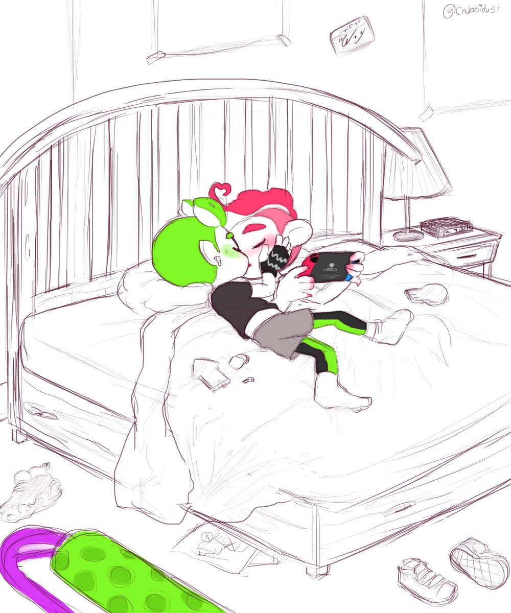 886 6878 octoling and inkling scooting closer together in bed happy splatoon 23/01/06 17:59