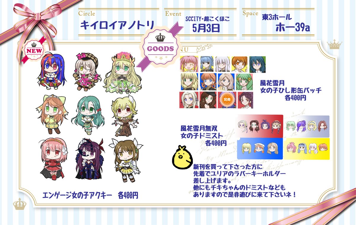 金曜日-東Y38b「キイロイアノトリ」 冬コミスペース頂きました🙇♀️ 新刊と、ユリアの新しいグッズ出せたら・・・!!! よろしくおねがいしますー🐥✨ webcatalog-free.circle.ms/Circle/16821668 #C101WebCatalog
