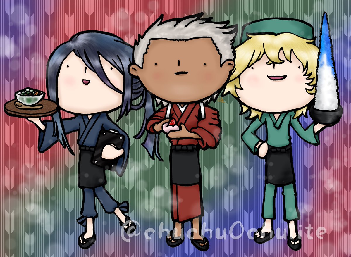 #今年も残りわずかなのでお気に入りの4枚を貼る ゆるいFGO絵括りにしてみました! 本当に今年、夏はむちゃくちゃ頑張って描いてたのですけどね💦 私の絵じゃなく、オリジナルのカルデア甘味処イラスト、最高ですよね🤤