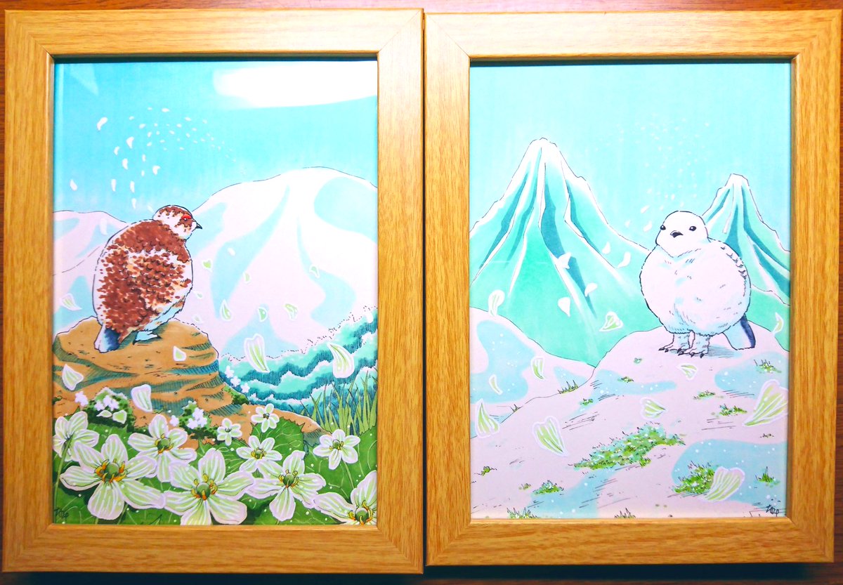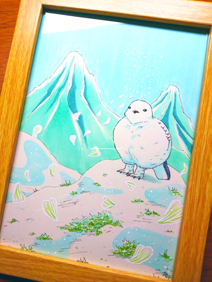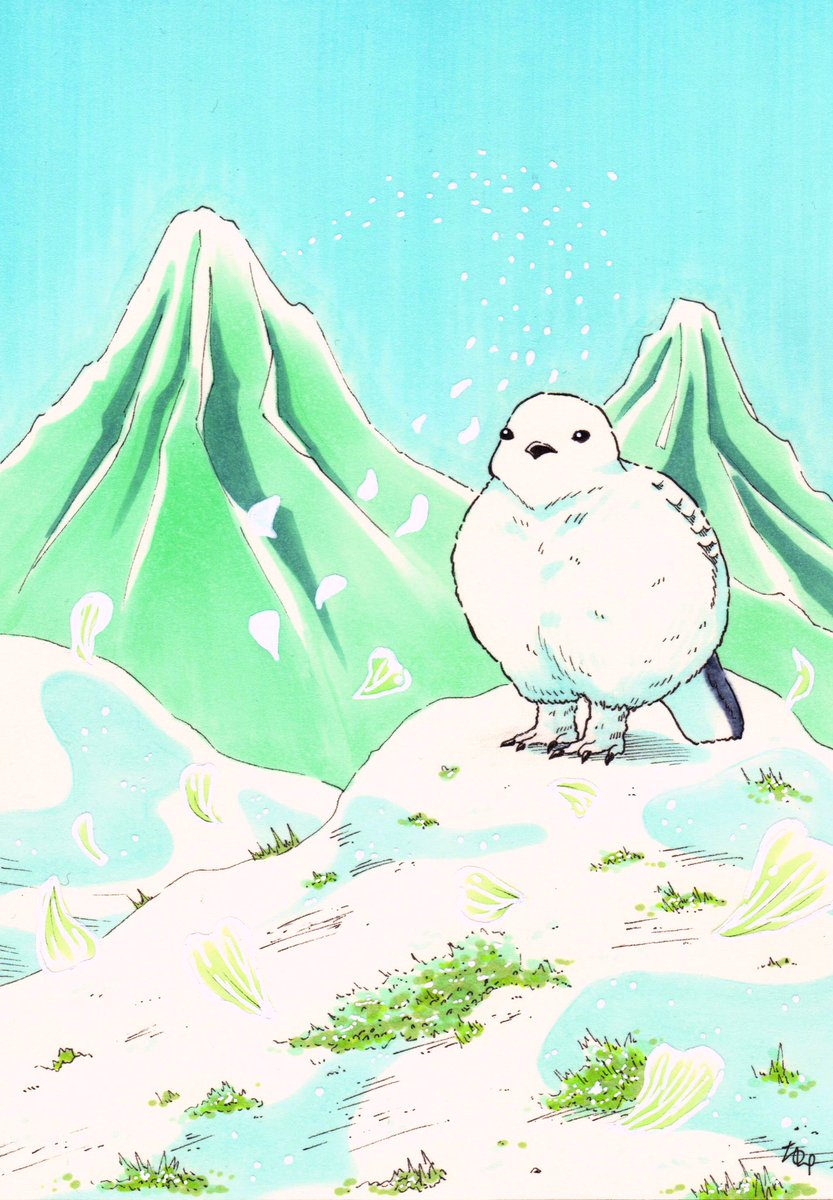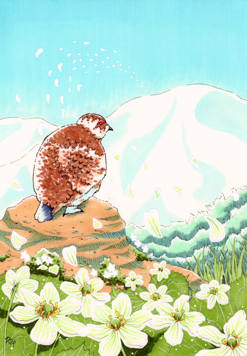 「想いよ、届け」 サンカヨウの花びらが舞い降りてきた。 それは、遠くの山にいるライチョウからのメッセージ。 花びらに込められたメッセージとは… #イラスト #アナログイラスト #illustration #コピック #イラスト好きな人と繋がりたい