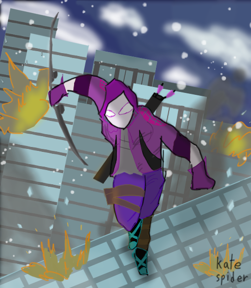 「もしも、ケイトビショップがクモに嚙まれたら…」 弓矢を使うスパイディー! 雪の感じをうまく描けた! #illustrationart #イラスト #絵描きさんと繋がりたい #SpiderVerse