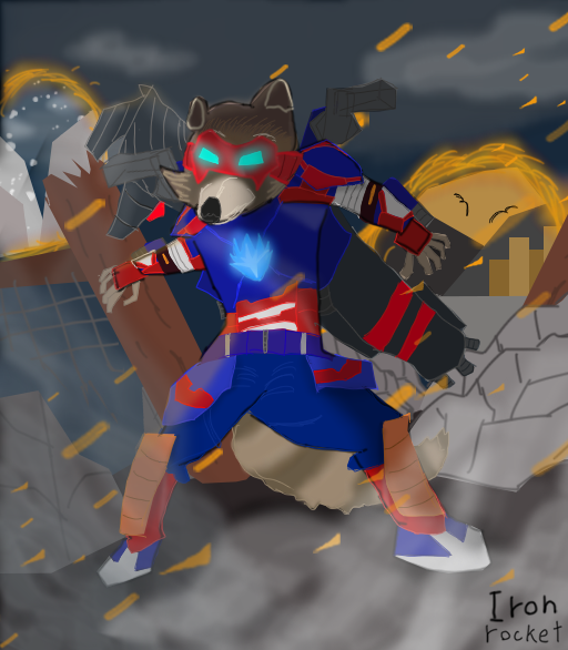 「もしも、スターク製のスーツで登場したら…」 久々に動物を描いた。 もっとメカメカしいロケットがみたい! #illustrationart #イラスト #絵描きさんと繋がりたい #Marvel