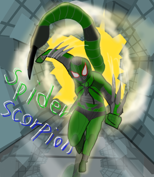 「もしも、スコーピオンが蜘蛛として活動していたら…」 今回は背景もデザインにもこだわった! スパイダーバースのポスターを参考にして描いた! #illustrationart #イラスト #絵描きさんと繋がりたい #Marvel