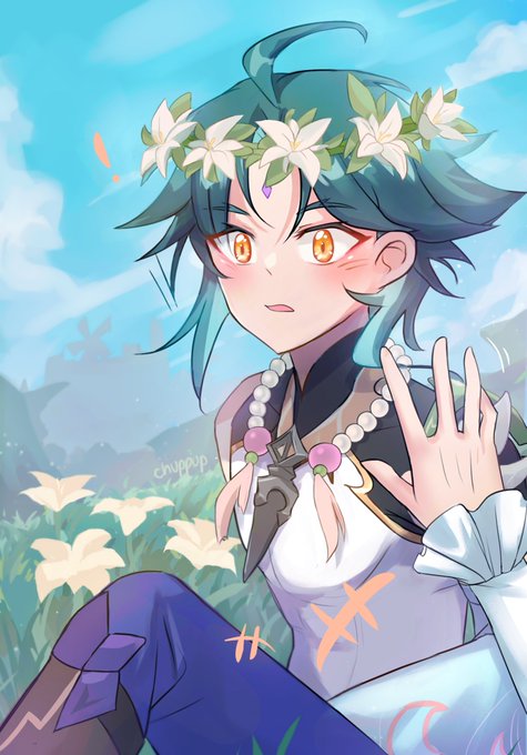 a smooch for his vigilant yaksha happy belated birthday xiao!!! #xiaoven #GenshinImpact #venti