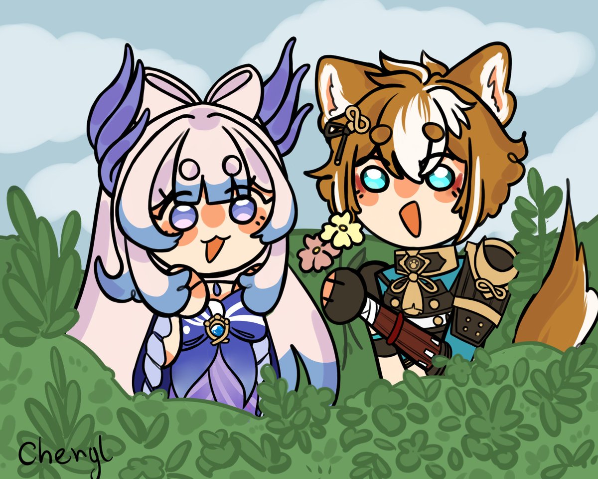 When I saw their name ship was Kokorou I had to draw them... #kokomi #gorou #genshinimpactfanart