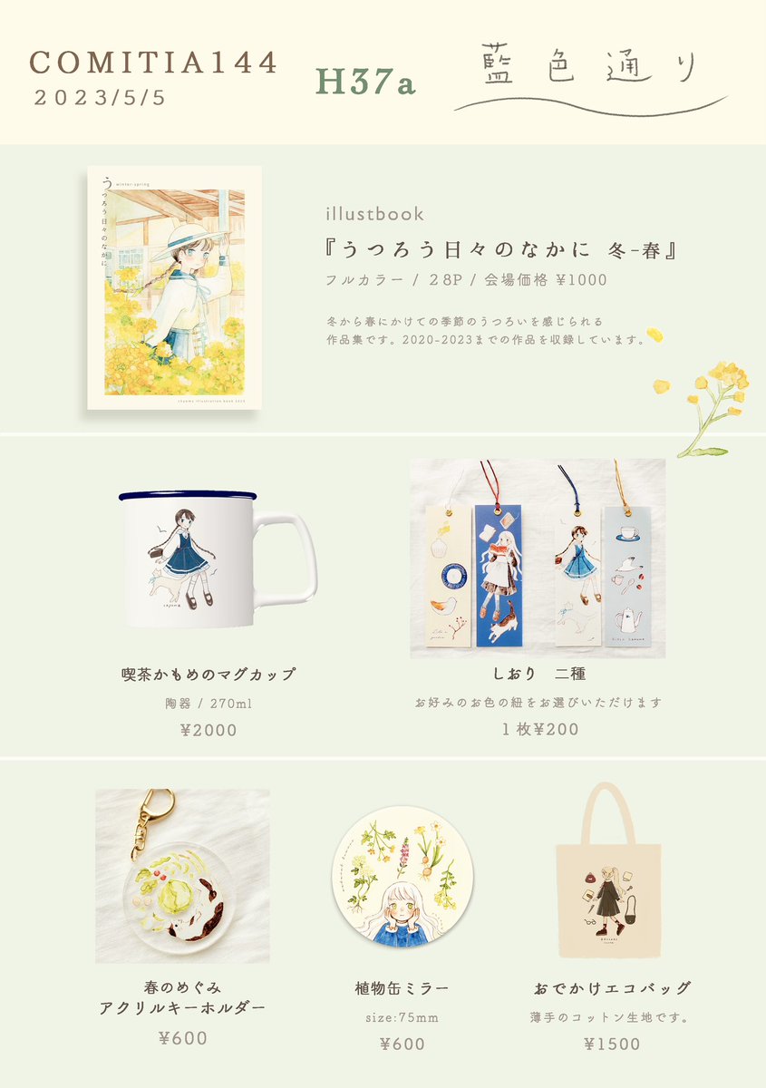 5/5(金)東京ビッグサイトにて開催される、COMITIA144に参加させていただきます! お品書はこちらです🌿マグ、トートバッグは少数となっております。 スペース【H37a】にてお待ちしております。よろしくお願いいたします☺️ #COMITIA144 #コミティア144