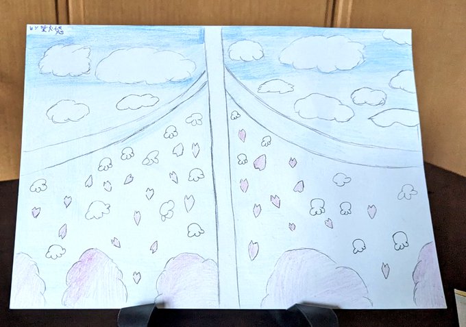 1 4 #イラスト #風景画 サッカー観戦中に描きました。左 ご飯食べ終わった後に描きました。右 23/04/02 17:10