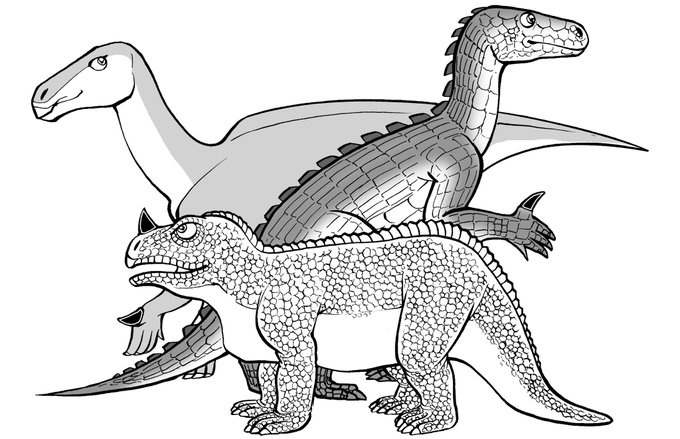 これは漫画だけど最初は水晶宮の復元(一番手前)ってトンデモだなと思ったんですよ。でもちゃんと四肢は直立しているし生き物として無理のない復元を当時手に入る限りの情報から組み立てているんですね。改めて昔の人すげーになります。 twitter.com/cid_rapter/sta…