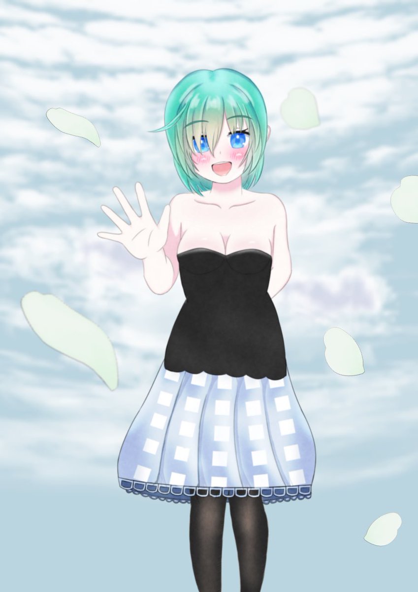 #イラスト てんさん(@wfPKJOiYqexXRGf )の翠ちゃんをお借りしまして、描かせいただきました😊♪♪ ありがとうございましたヽ(´▽`)/ 「お待たせ💕」