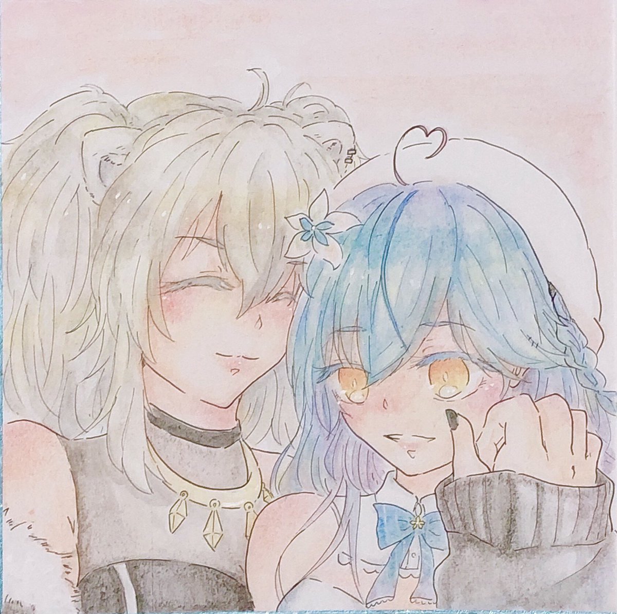 #私の絵柄で見てみたいキャラっていますか お題3つ目は"かなココ"!! 二人の間にあるあったかい絆みたいな繋がりがずっとずっと好き😌 リクエストありがとうございました✨ #かなココ #みかじ絵 #かなたーと #アナログ絵 #水彩