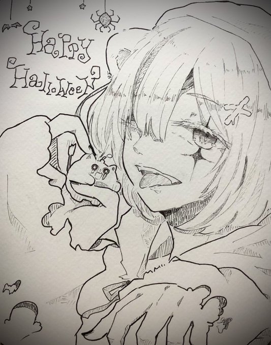 21 66 𓂃 𝕙𝕒𝕡𝕡𝕪 𝕙𝕒𝕝𝕝𝕠𝕨𝕖𝕖𝕟 𓂃 今年はシスターなししろんにした✝ 久々のモノクロイラスト!! #ししらーと #アナログ絵 22/10/31 23:11