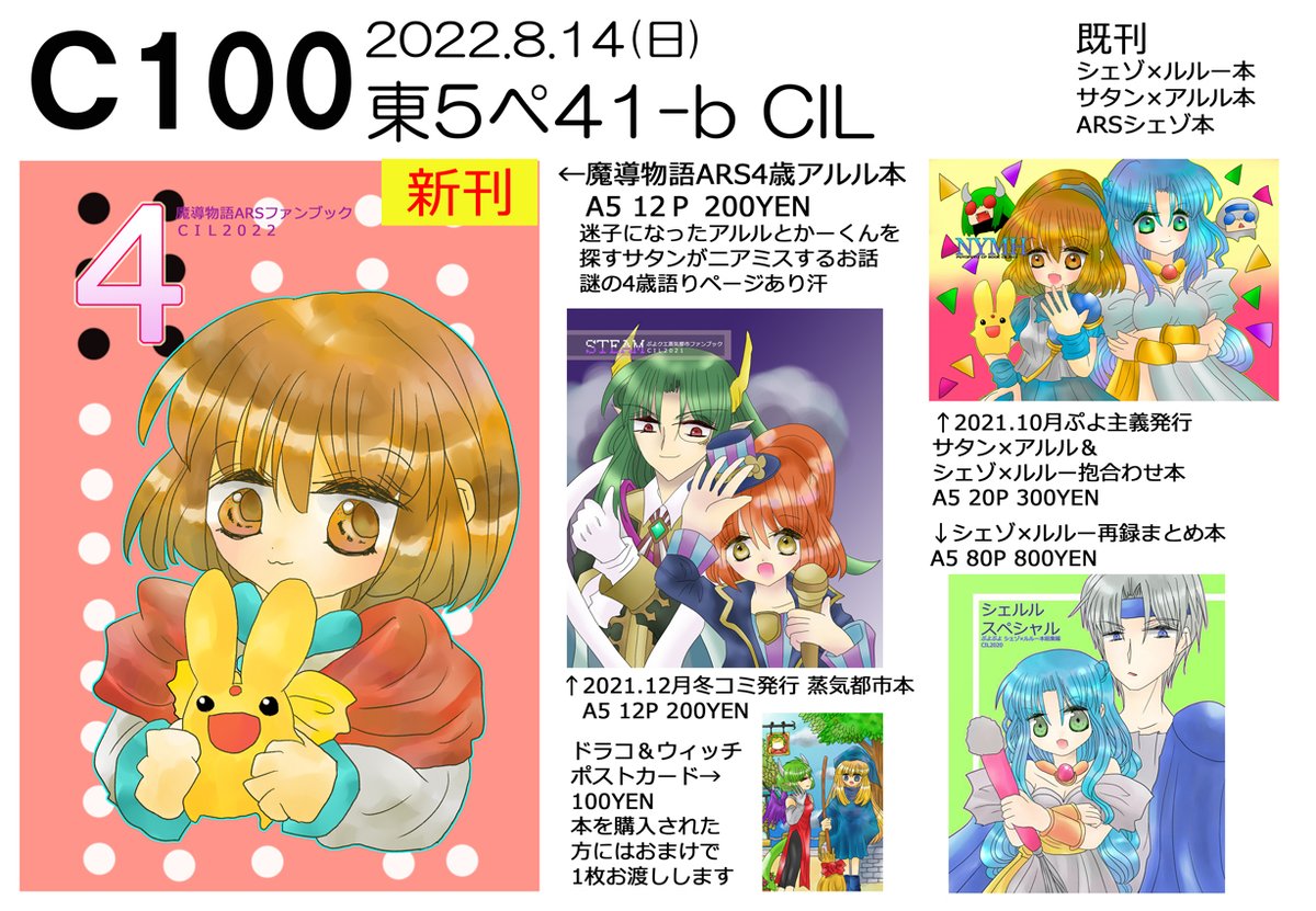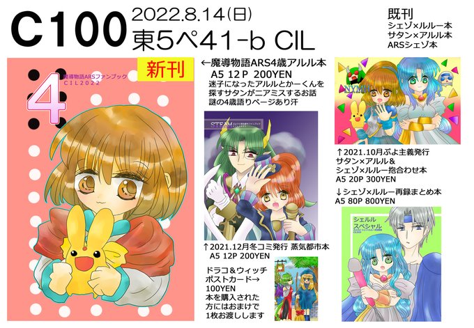 遅くなりました💦夏コミスペースいただけてました☺️新刊出せるようにがんばります!! あなたのサークル「CIL」は、コミックマーケット100で「日曜日東地区 "ペ " 41b」に配置されました!コミケWebカタログにてスペース配置場所公開中です! webcatalog.circle.ms/Circle/Map/162… #C100WebCatalog