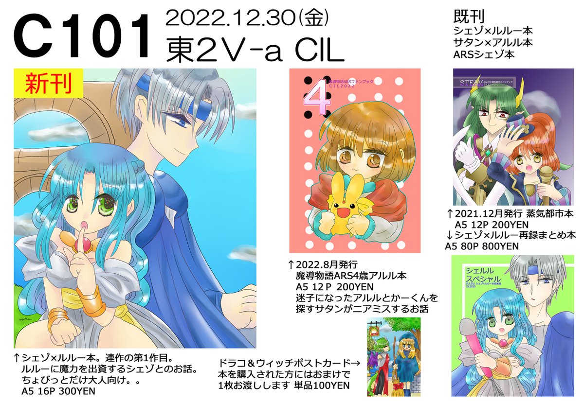冬コミスペースいただけました☺️ありがたや✨ 新刊出します!!! あなたのサークル「CIL」は、コミックマーケット101で「金曜日東地区 "V " 42a」に配置されました!コミケWebカタログにてサークル情報ページ公開中です! webcatalog.circle.ms/Circle/1681202… #C101WebCatalog