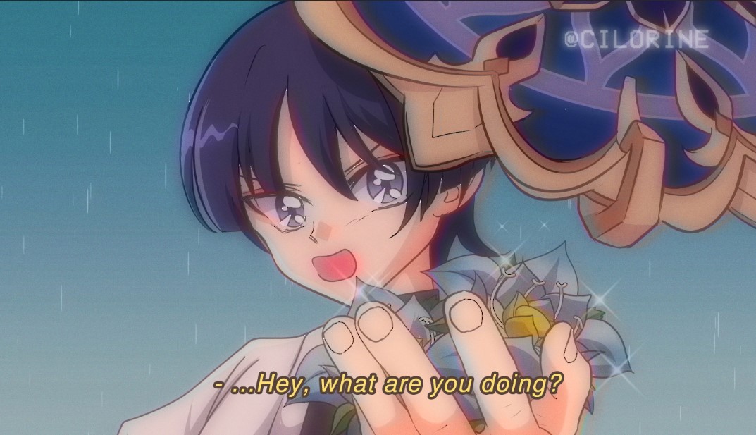 tsundere dude mocks u for not being able to fly and reach the cliff flower, but picks it up himself and gave it to u anyway #wanderer #scaramouche #GenshinImpactCC
