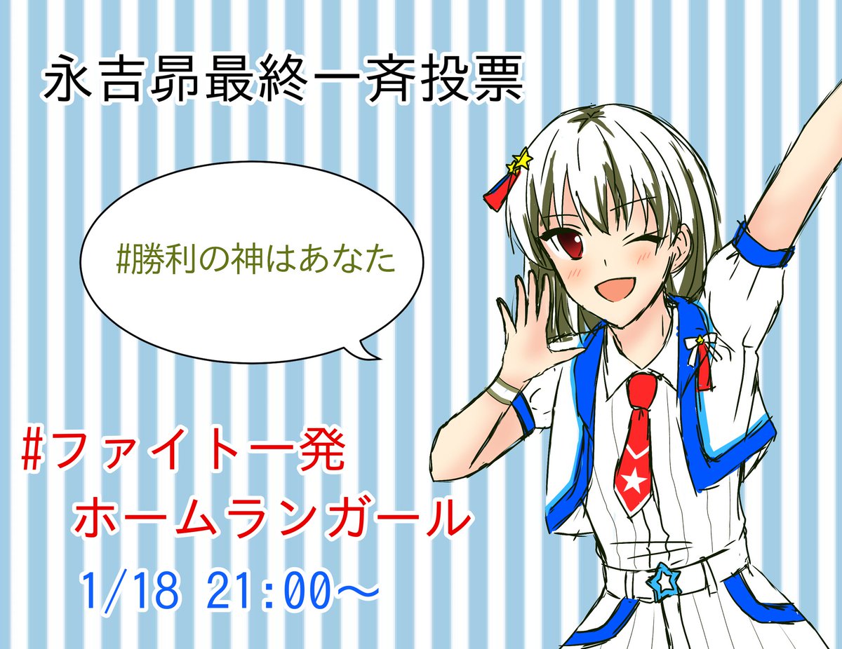 1月18日21時〜永吉昴一斉投票! あなたの票で昴にすっげーホームランを!!! #ファイト一発ホームランガール #勝利の神はあなた #旅人昴 #永吉昴TC