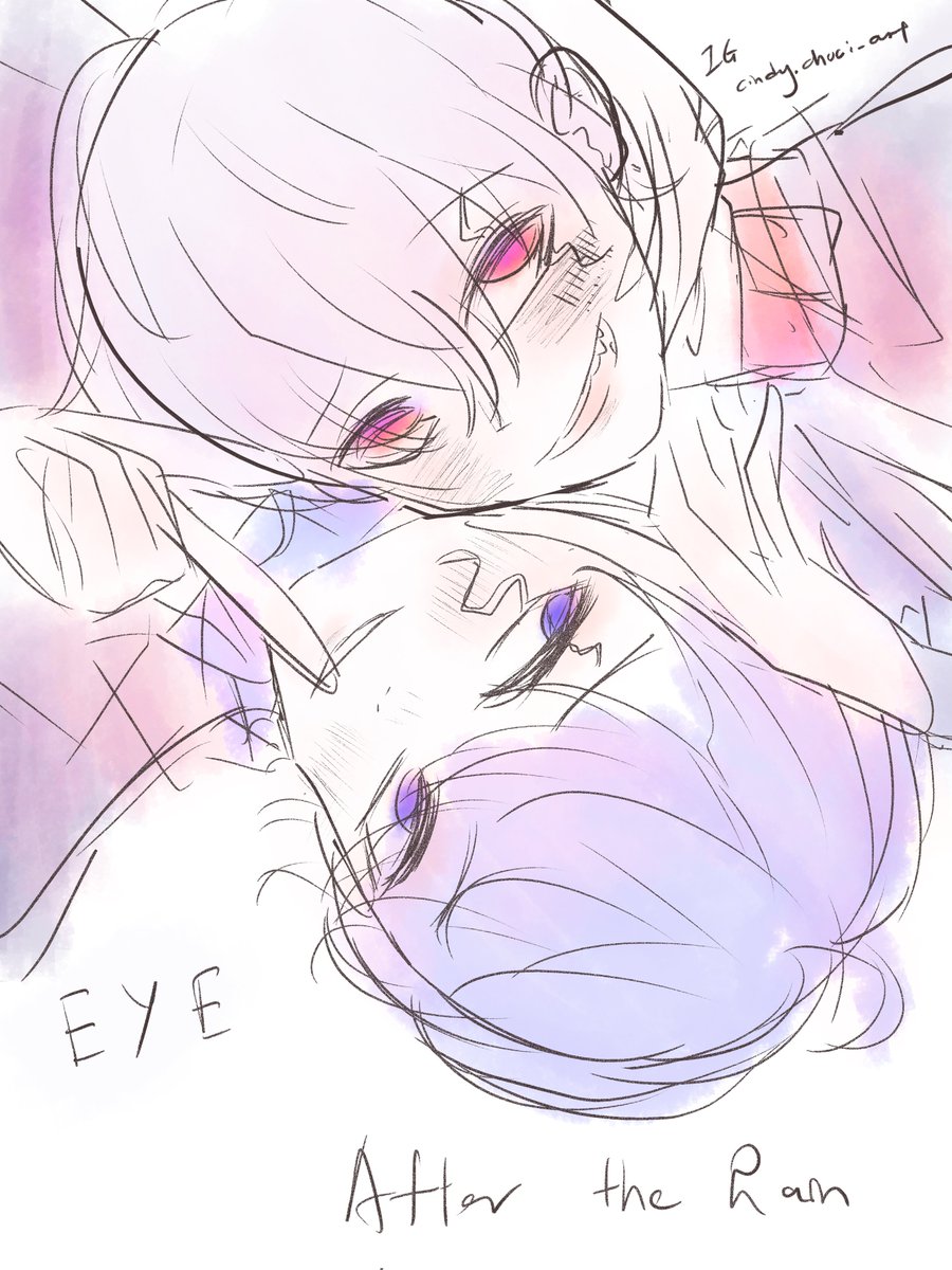 Quick doodle- I didn't expect they cover this song together, oh my tear ; ; #そらるの絵 #まふあーと #Atr #AftertheRain #落書き #绘 #創作
