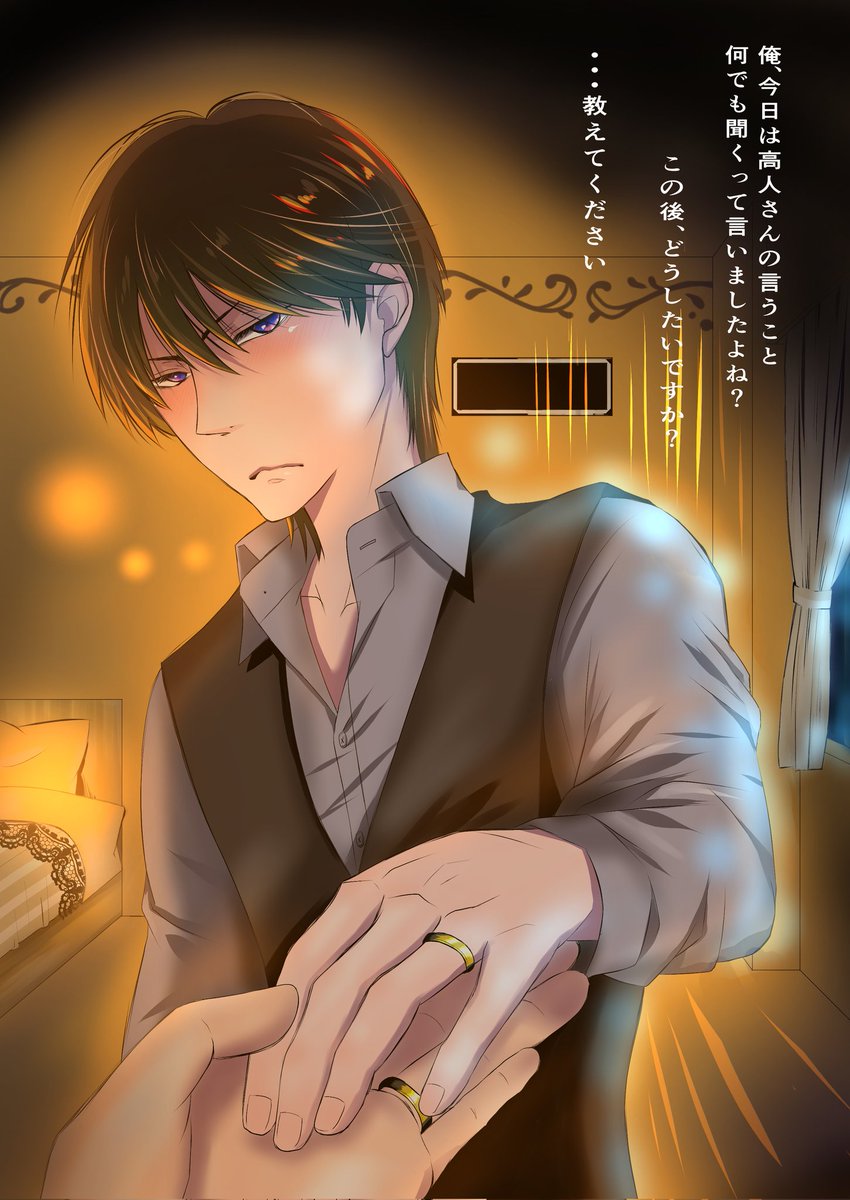 杜貴さんのあざと高人さんに心臓ぶち抜かれまして❤️ 許可を頂きチュン太ver描かせて頂きました😳✨ 「この後、何する?」って言ってほしい私の願望ですw なるべく世界観を壊さないように杜貴さんの絵に寄せて描きました✍️ しかし、高人さんの意図的なあざとさの破壊力には敵わないですね😂 #だかいち twitter.com/rose_toki_rose…