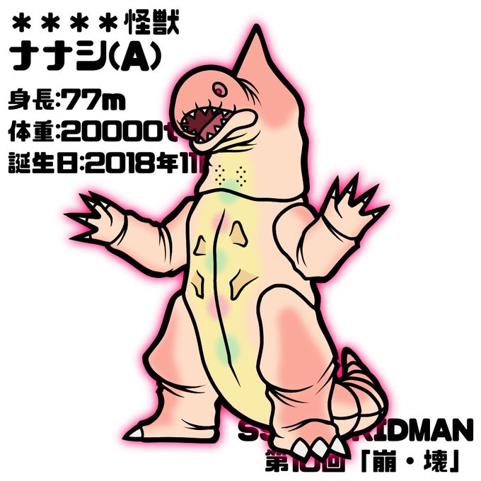 SSSS.GRIDMANより、****怪獣ナナシ(A)を描いてみた。 わざわざCGで作られてるのにも関わらず、この「着ぐるみ怪獣」感満載の造形が最高に怪獣オタク心をくすぐります。グリッドマン怪獣の中では1番好きかも。 #SSSS_GRIDMAN