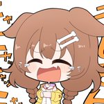 唐揚げが暑すぎて顔がザブングルみたいに険しくなるぼたんちゃん #ししらーと