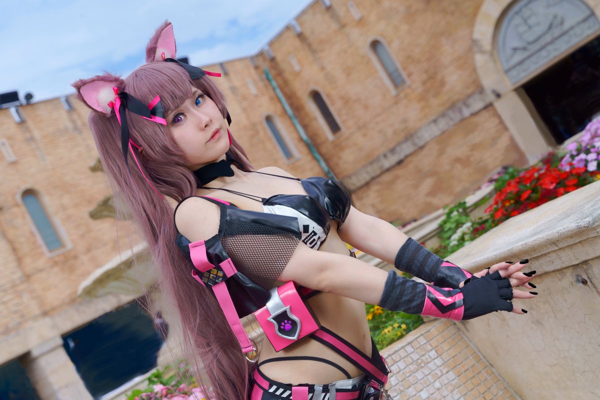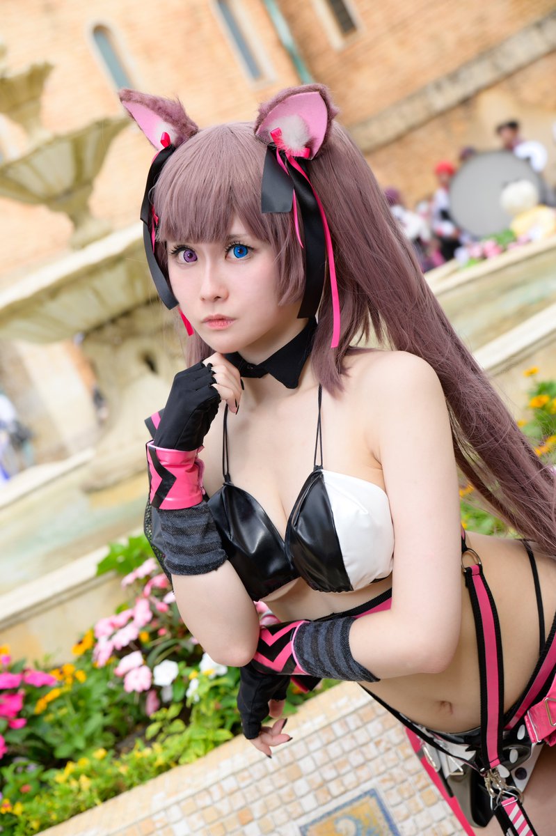 #コスモスナップ09 【名前】双葉雫 【作品名】NIKKE 【キャラ】ネロ 【一言】実装前の立ち絵1枚で1から制作! 耳、しっぽ、靴下は理想の物がなかったので染めました! ネコキャラのため猫目になるようにアイラインやつけまなど、こだわりました! コスプレした翌日に実装が発表されビックリです♡