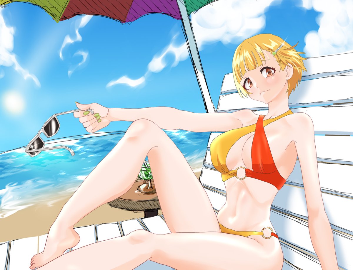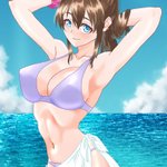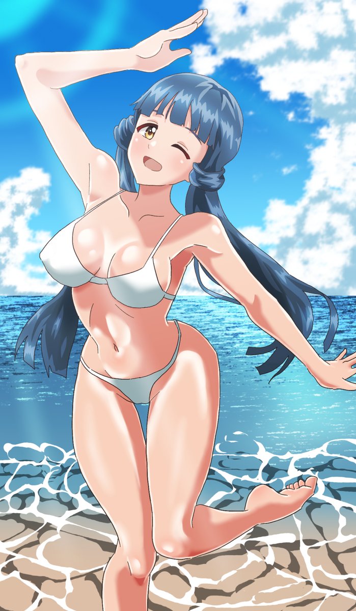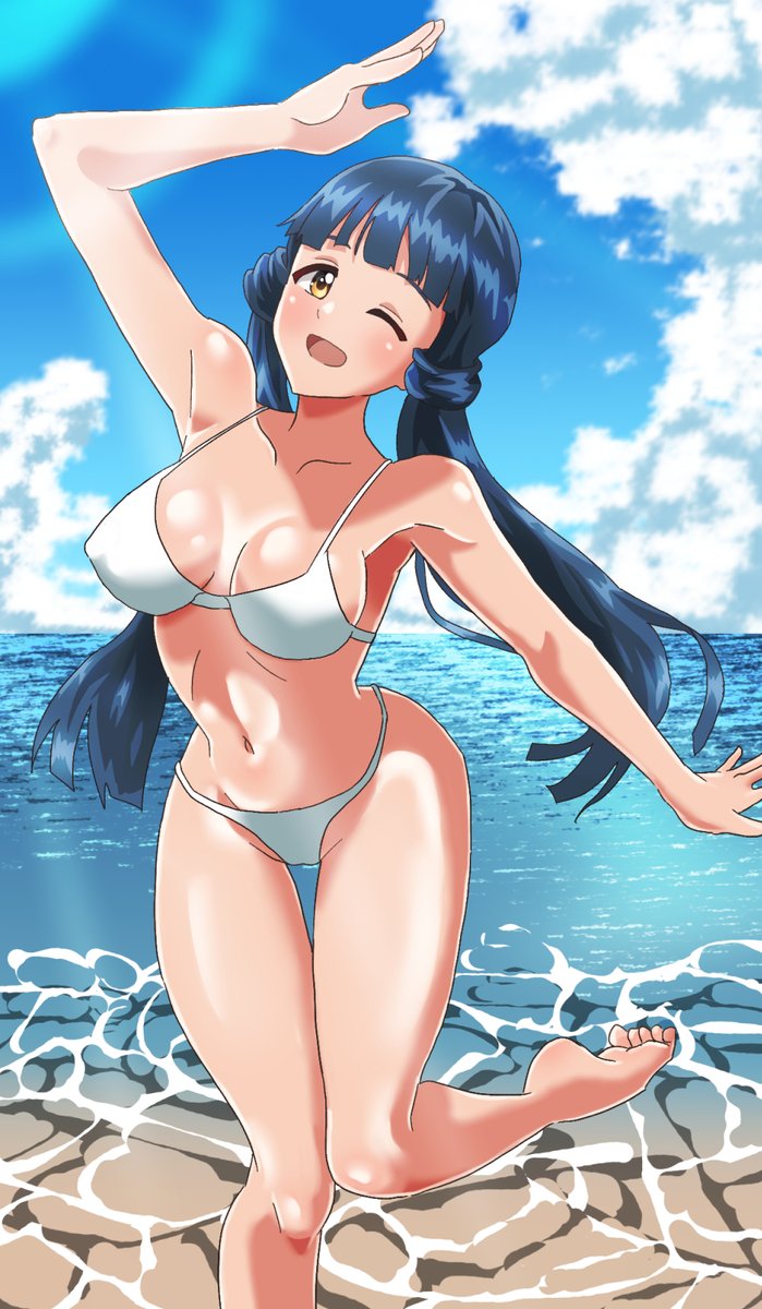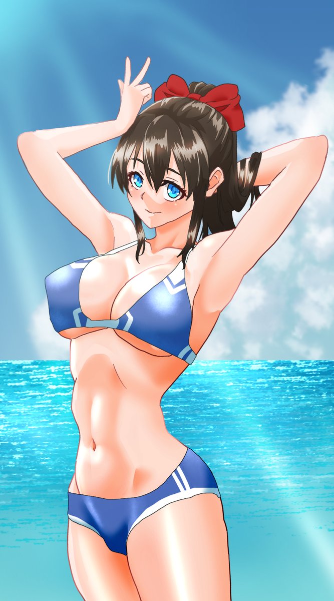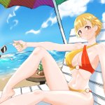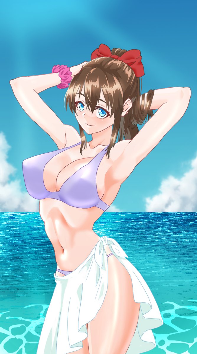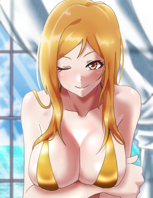 106 290 お題箱より 「胸を寄せて谷間を強調しているビキニ姿の百瀬莉緒」 通販で仕入れたセクシー水着をプロデューサーに見せびらかしてくる莉緒さんをイメージして描きました 22/09/13 00:14