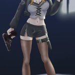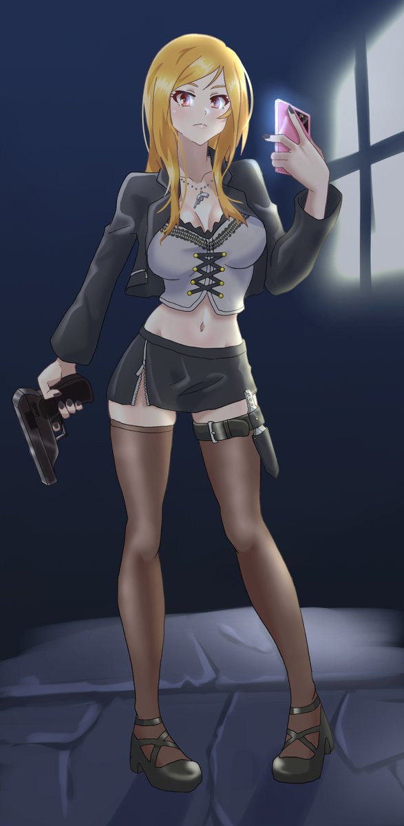 お題ありがとうございます 「右手で拳銃、左手でスマホを持っているエージェント衣装の百瀬莉緒」 指定のポーズと違う感じになってしまいました