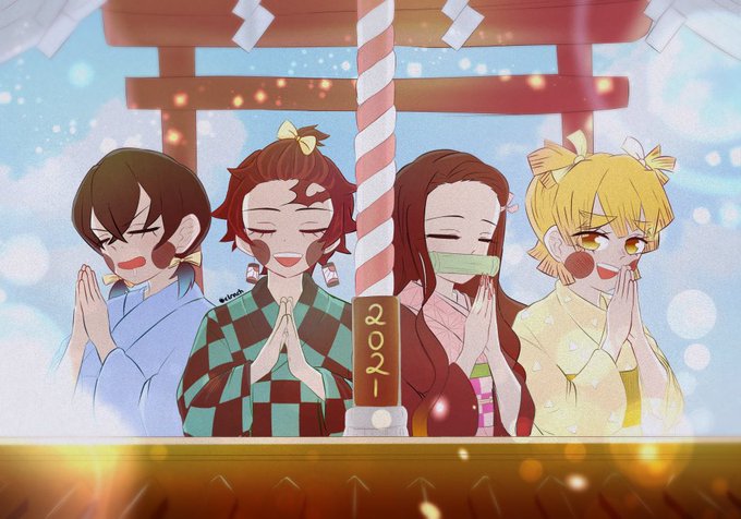 あけましておめでとう‼️🙏🏼⛩ #HappyNewYear2021 #鬼滅の刃 #鬼滅の刃絵描きさんと繋がりたい #鬼滅の刃イラスト #竈門禰󠄀豆子 #竈門炭治郎 #我妻善逸 #嘴平伊之助 #かまぼこ隊 #kimetsunoyaiba