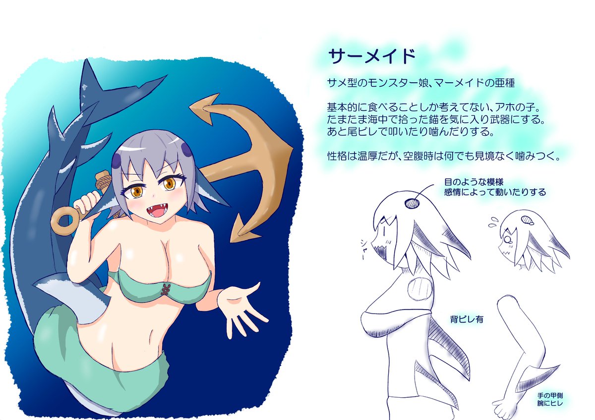 サメ娘描きました! まだ締め切り大丈夫なはず… #モンぐらデザインコンテスト