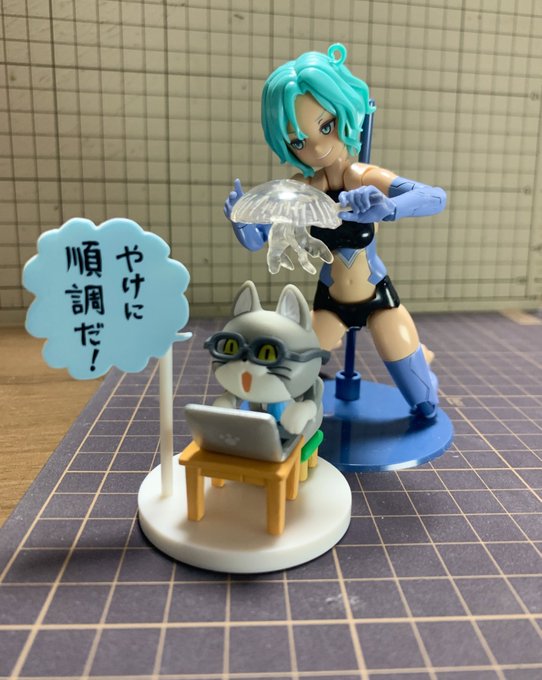 こないだクラゲのフィギュアが水族館で当たって... やめなさいろーちゃん #メガミデバイス