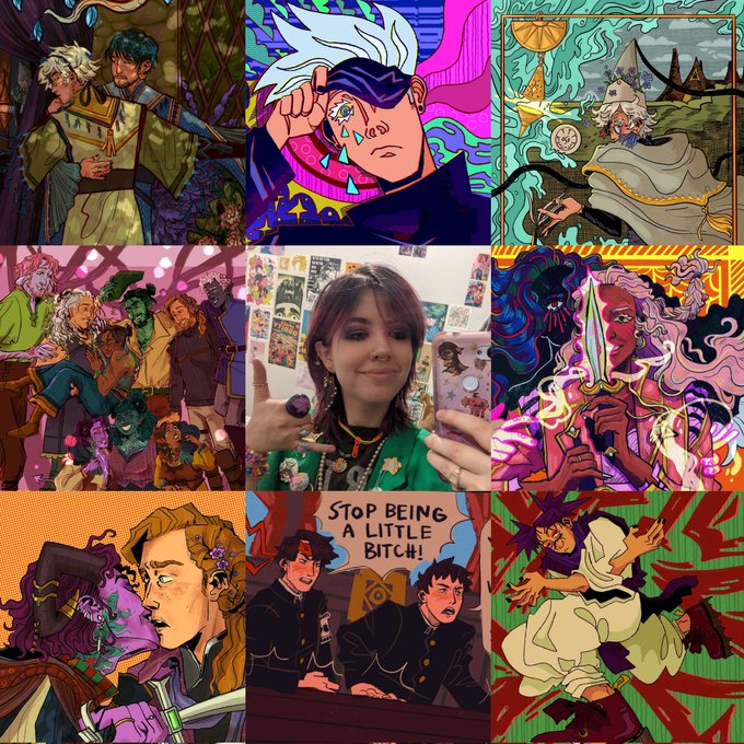 hi #PortfolioDay ‼️ i’m addi, a illustrator and comic artist who loves anything fantasy, queer, or ttrpg. i’m currently looking for work! commission info & portfolio✨ bio.site/clambatch 💌: addiclambatch@gmail.com 🦕❤️🏳️🌈✌️