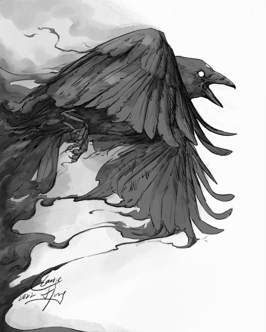 なんが忌々しいもの描きましたな私 w 最近部屋探しの件でめっちゃ落ち込んでる、落書きの時間も減ちゃった🥺 #鴉 #鳥 #絵描き #落書き #絵描きさんと繋がりたい #イラスト #デジ絵 #煙 #procreate #crow #raven #illustration