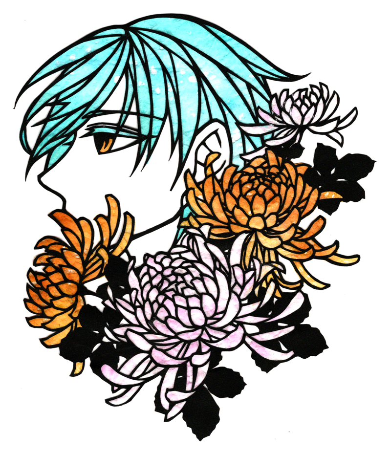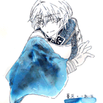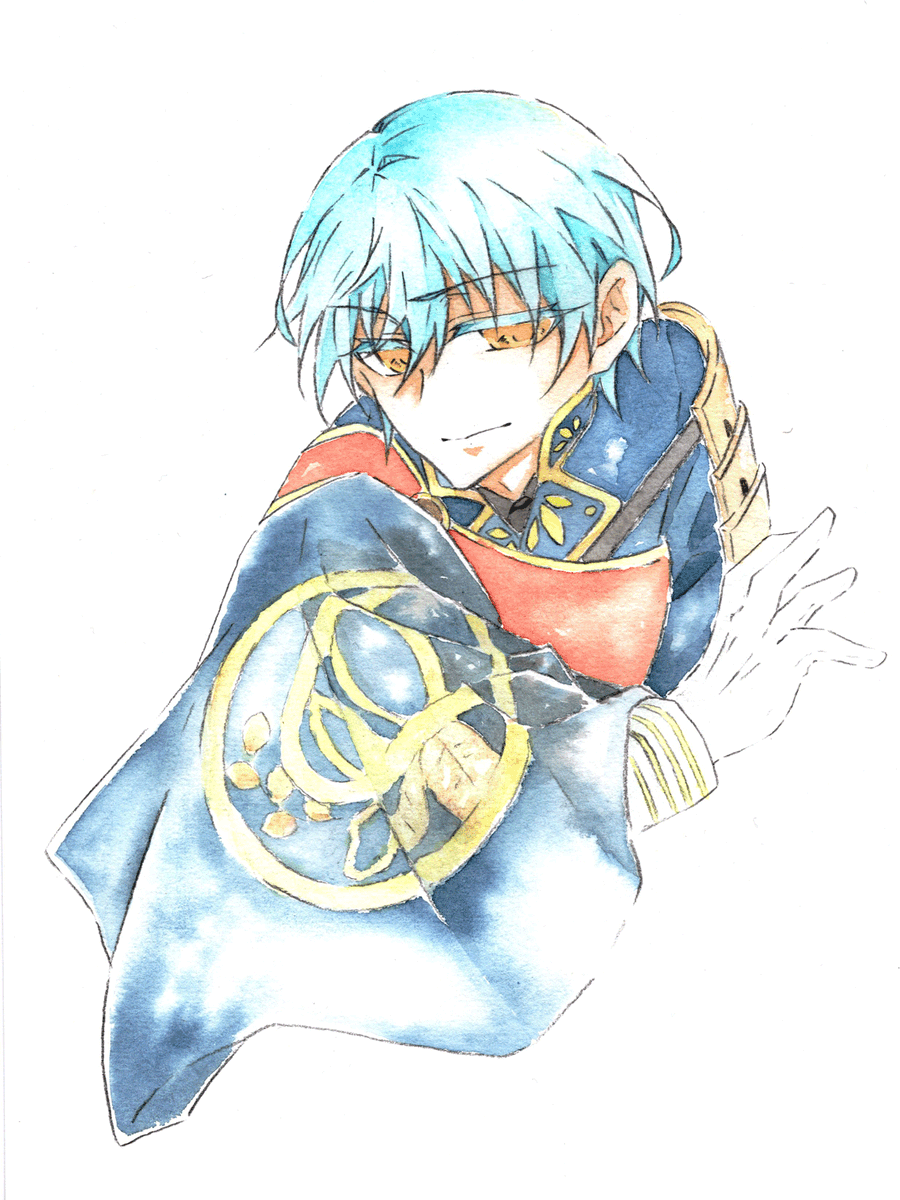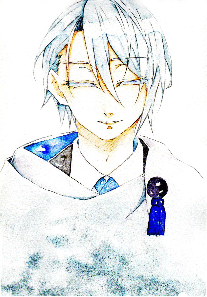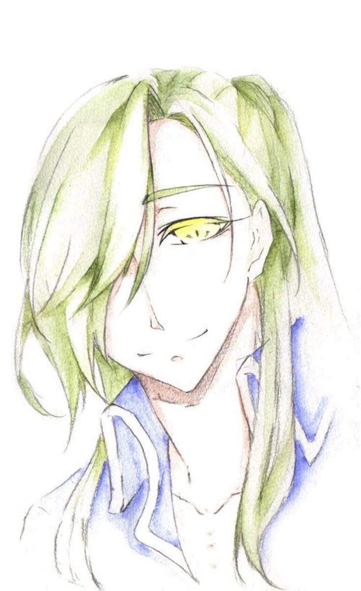 山姥切長義さんの輝かしい記念日と聞いて! 以前ふぉろわさんに選んでもらった山姥切さんにぴったりなインクで描きました(*´艸`*)おめでとうございます&益々のご活躍を楽しみにしております #2月18日は山姥切長義旧国宝指定日 #2月18日は山姥切長義重文記念日 使用インク:コバルトジャズ(Diamine)