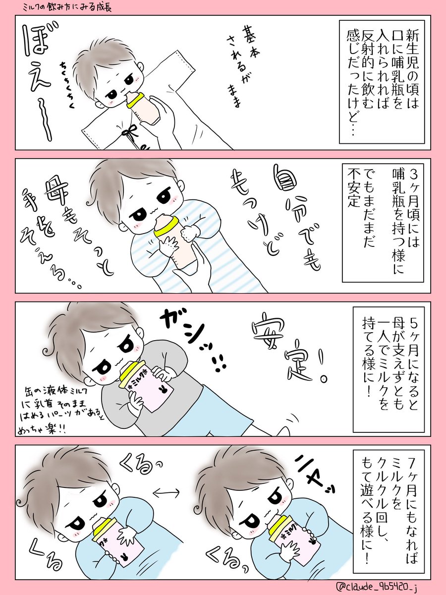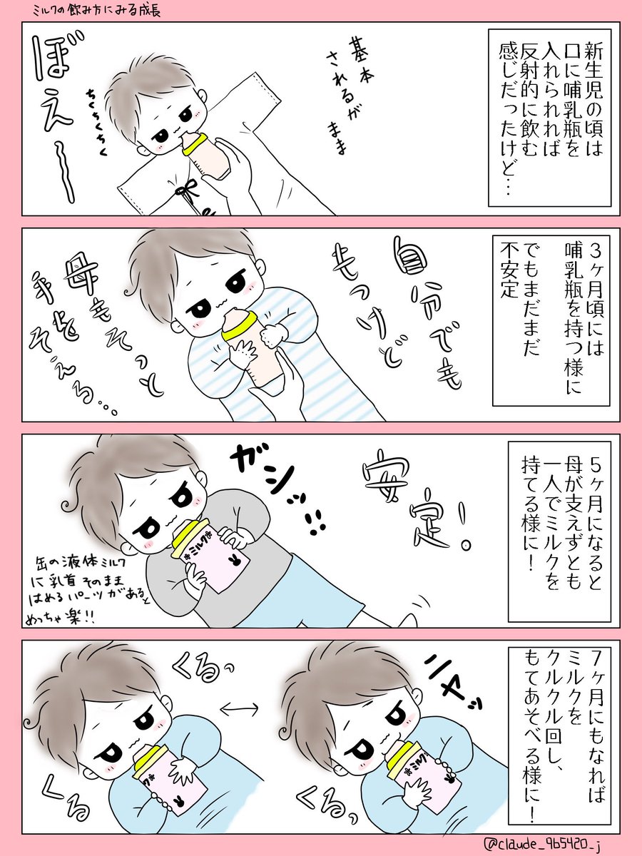 1 5 ミルクの飲み方にみる成長☀️ いつの間にか大きくなったなぁ… ついこの前生んだ気がしたのに… #育児漫画 #育児絵日記 #育児イラスト #漫画が読めるハッシュタグ #ミルク 20/10/18 20:54