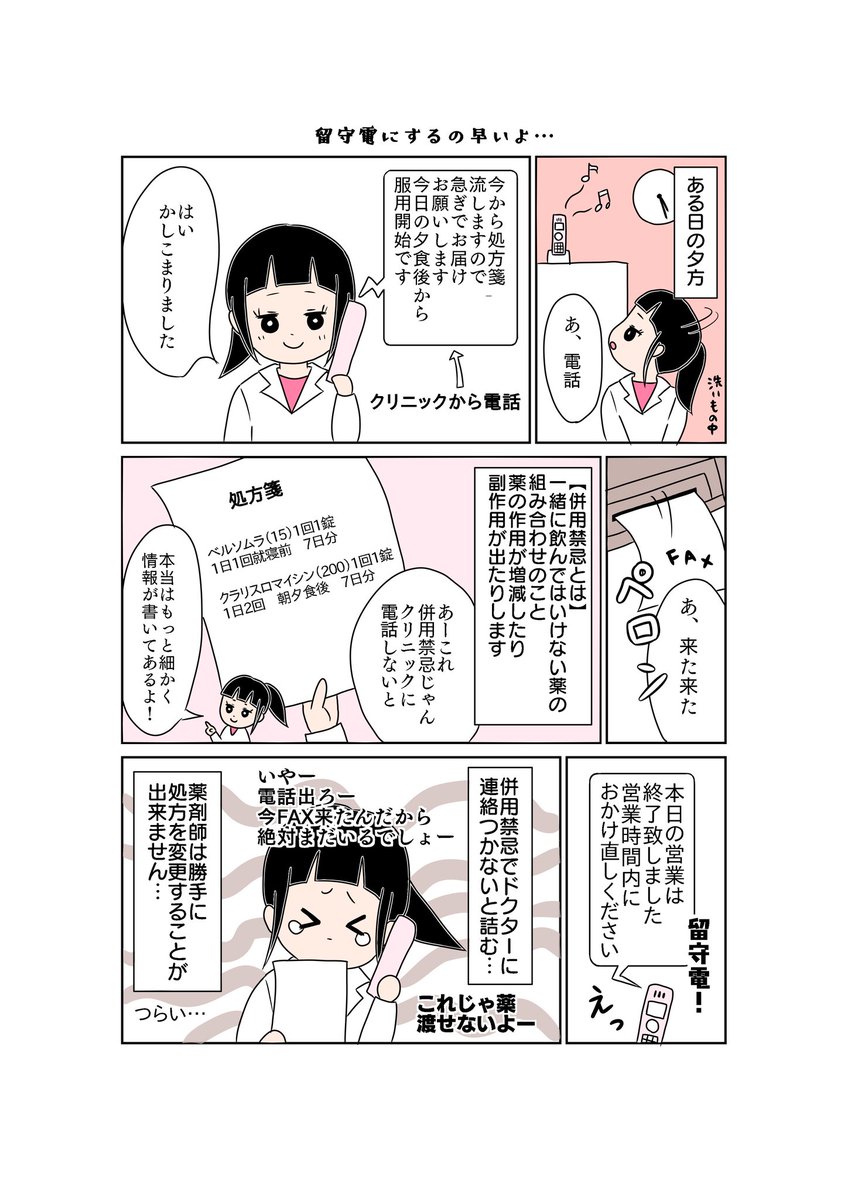 1 4 訪問薬剤師クロの日常 4 留守電にするの早いよ… #薬剤師 #訪問薬剤師 #漫画が読めるハッシュタグ #医療漫画 21/10/05 22:58