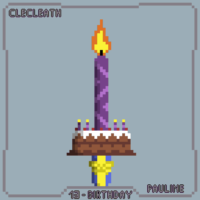 Thirteen ! Theme : Birthday. Pretty easy on this one, and the result feel nice. I'm using @randomspirits prompts list ! #swordtember #swordtember2022 #art #pixelart #dessin