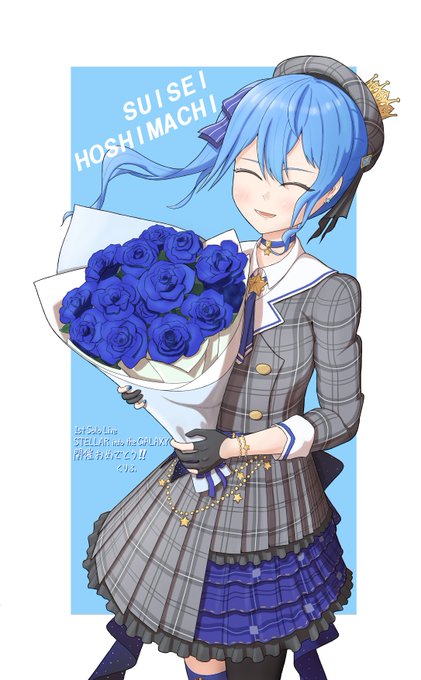 星街すいせい2nd Solo Live "Shout in Crisis"へ贈ったフラスタのイラストに簡単な背景を加えたものになります。 衣装公開前のため実際のものと異なる部分がありますが、せっかくなのでそのままで。 改めて、ライブ開催おめでとう🎉 フラスタはツリーから↓ #ほしまちぎゃらりー #ぎらぎらほしまち