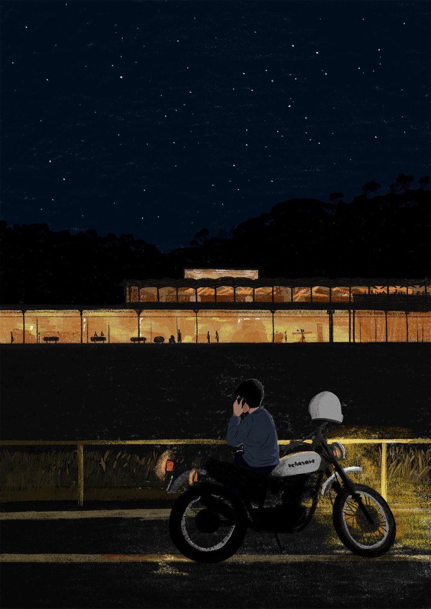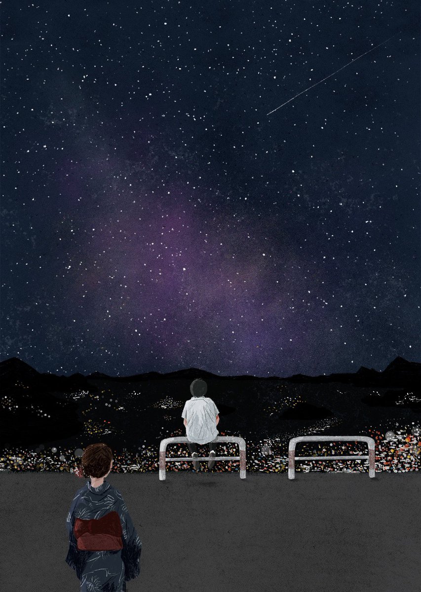 「ナイトラン」 学校対抗駅伝大会の選抜メンバーとなり、夏休みの間部活とは別に練習をすることになった娘がやるからには選手として出場したいとのことで選考会までの間一緒に走るとこにしました 娘と走るの久しぶりで実はかなり楽しみ #イラスト #ランニング #procreate #illustration #running