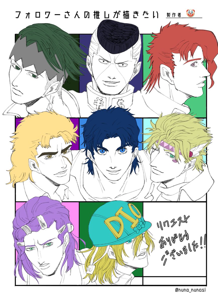 #フォロワーさんの推しが描きたい #jjba 遅くなりました!普段描かないキャラが多かったので大変でしたが楽しかったです☺️リクエストありがとうございました!!